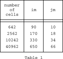 We denote the horizontal extent of the array depicted in figure 3 with the integer im and the vertical extent with the integer jm. For this example, im=90 and jm=10. These numbers are dependent on horizontal resolution as shown in the following table: